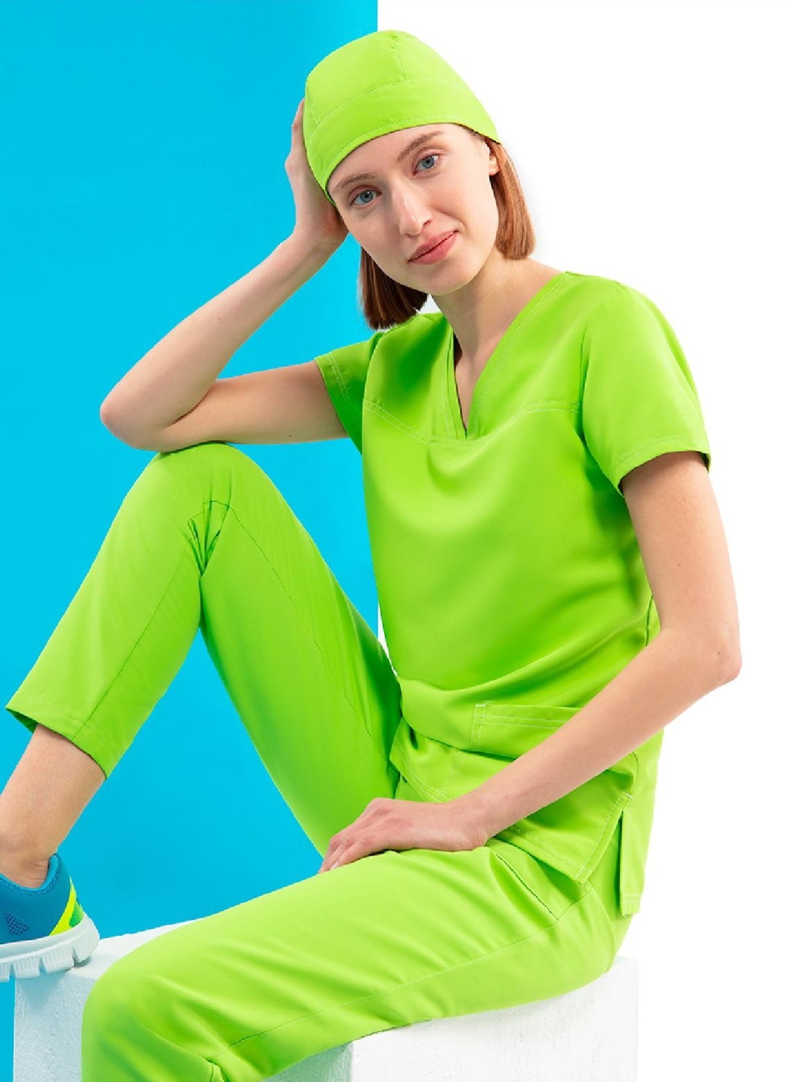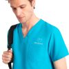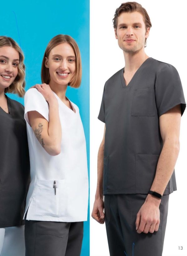 Scrub Top SMART are o croiala lejera, cu guler in V si maneci lungi prevazute cu mansete din tricot, in culoare asortata. Dispune de un buzunar mic pe partea inimii si doua buzunare frontale mari, cu cusaturi duble intarite. Suporturile pentru pix sunt amplasate in buzunarul drept. Cele doua deschizaturi laterale asigura libertate totala de miscare.