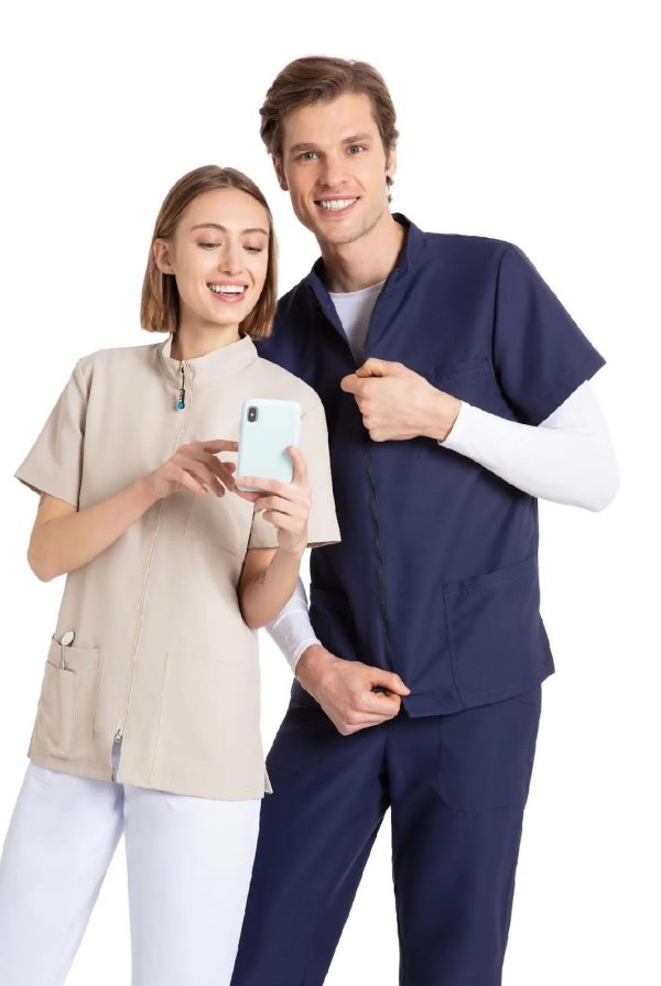 Scrub Top NEXT are o croiala dreapta, guler inalt si fermoar reversibil cu doua directii pe toata lungimea (pentru confort maxim, chiar si in pozitia asezata). Dispune de un buzunar mic la piept si doua buzunare frontale mari, cusaturi duble intarite si suporturi pentru pix in buzunarul drept. Cele doua deschizaturi laterale asigura libertate totala de miscare.